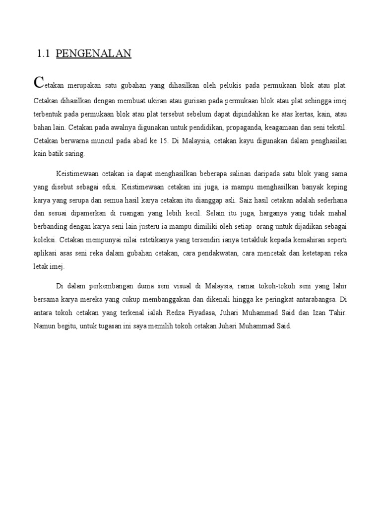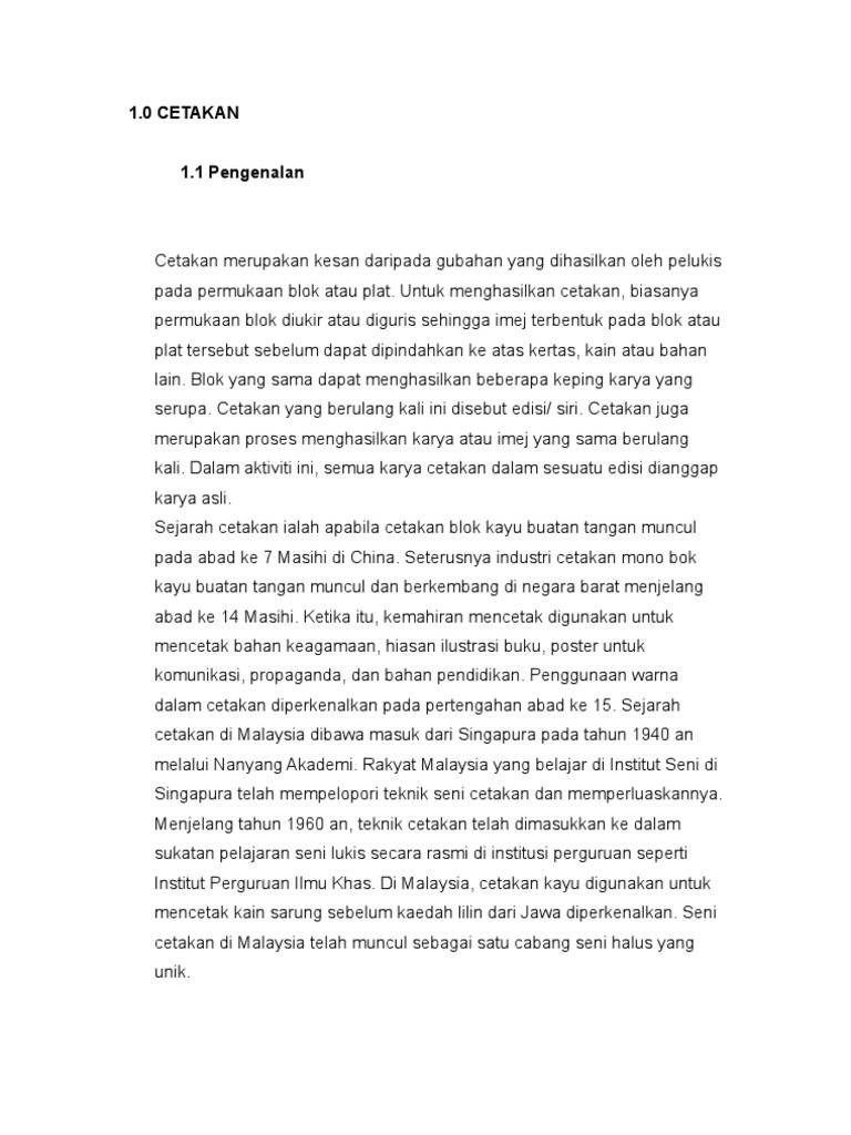 Nama ini diberikan dari bahasa latin iaitu seri (silk). Keistimewaan seni cetakan ialah blok yang sama dapat menghasilkan beberapa keping karya yang kini, seni cetakan telah berubah dari traditional yang menggunakan tangan dan ukiran sendiri. Oleh berpendidikandiposting pada 3 november untuk lebih jelasnya tentang daftar tokoh pergerakan nasional di indonesia adalah sebagai berikut Seni cetakan online worksheet for grade 2. Cetakan ialah proses terapan blok ke atas sesuatu permukaan. You can do the exercises online or download the worksheet as pdf. Pakaian renang cetakan vas trendyol tbess21ma0068. Ia adalah anak allah dengan wujud setengah allah, setengah manusia. Beliau dilahirkan di kuantan, pahang pada tahun 1939. Cetakan sutera saring juga dikatakan sebagai cetakan sarigrafi. Рет қаралды 769 күн бұрын. Berpendidikan awal di sekolah abdullah, kuantan dari 1945 hingga 1956. Berpendidikan awal di sekolah abdullah, kuantan dari 1945 hingga 1956.